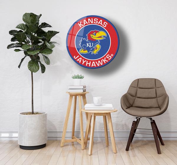 Kansas Jayhawks Art Design rundes spezial Glasbild!