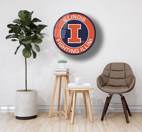 Illinois Fighting Illini Art Design rundes spezial Glasbild!
