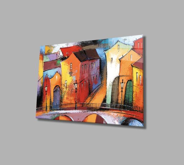 Preview: Farbige Stadt Art Design rechteckiges spezial Glasbild!