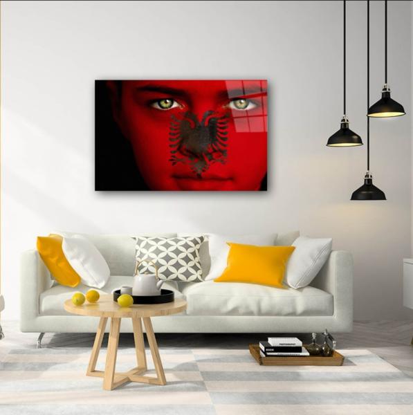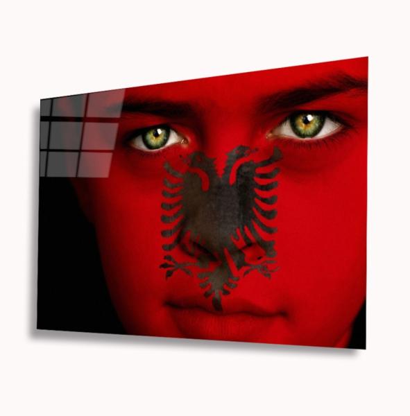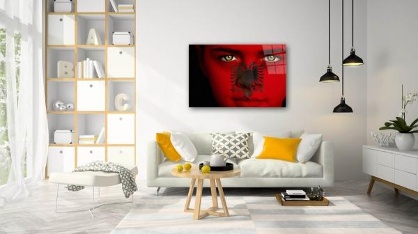 Albanische Flagge Mädchen Art Design rechteckiges spezial Glasbild!