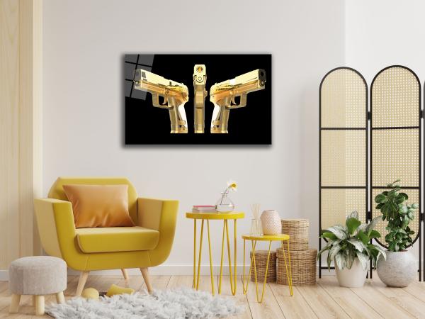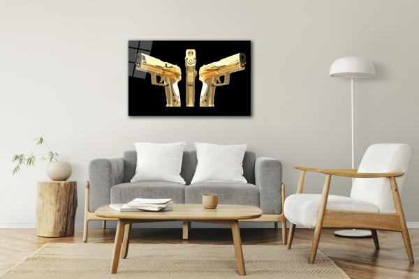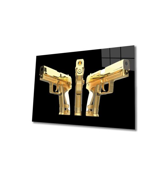 Goldene Pistole Art Design rechteckiges spezial Glasbild!
