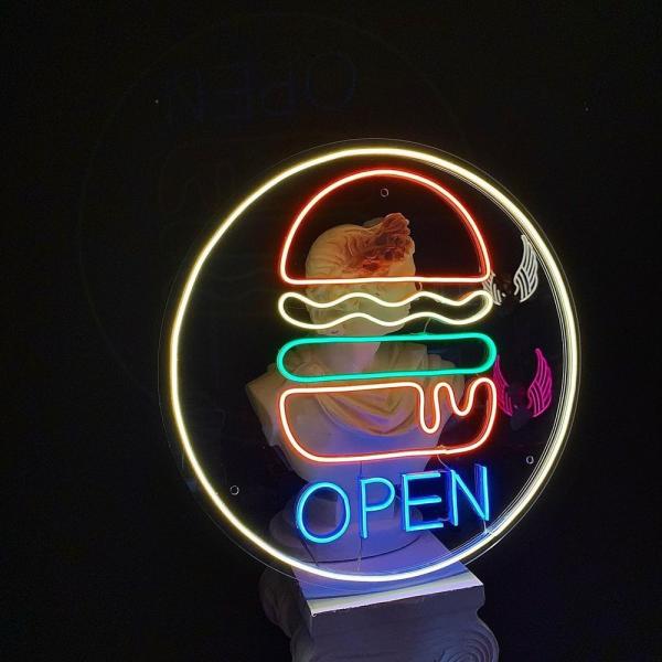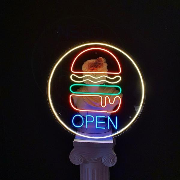 Hamburger Open Neon Led Werbeleuchte für ihr Restaurant, Fastfoodladen!