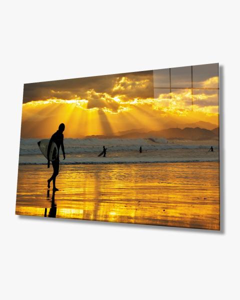 Sonnenuntergang & SurferArt Design rechteckiges spezial Glasbild!