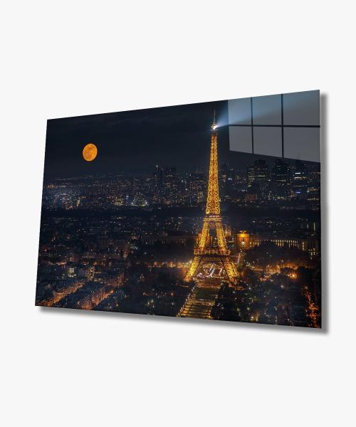 Paris im Mondlicht Art Design rechteckiges spezial Glasbild!