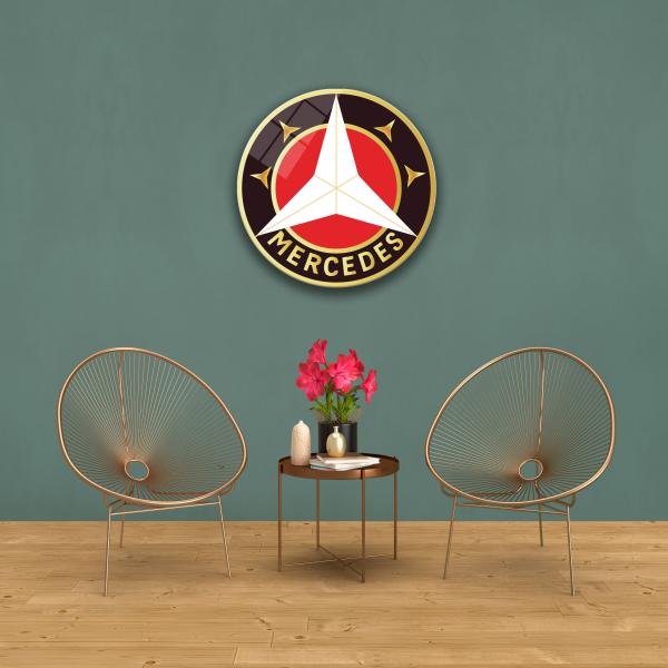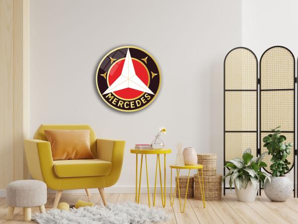 Mercedes Vintage Logo Art Design round special Glass Picture!