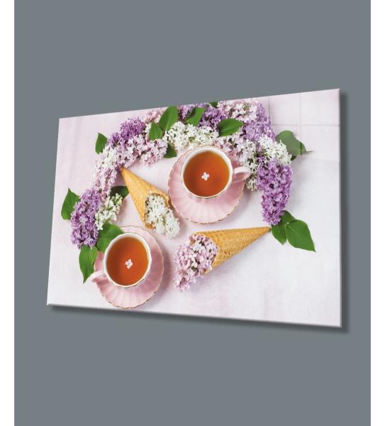 Tee and Flowers Art Design rectangular special Glass Picture!